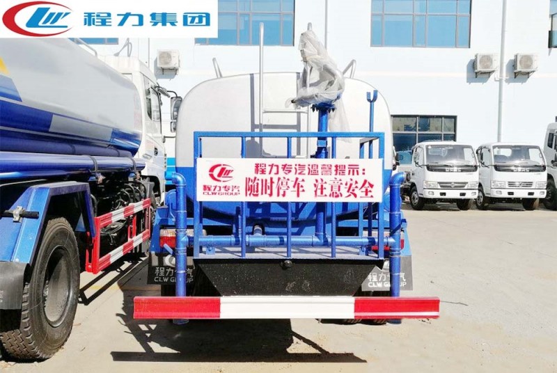 上裝配置:罐體有效容積6-10立方,罐體采用國標Q235碳鋼,罐體厚度4mm,自吸自排水泵,帶前沖裝置,后灑裝置,左右側噴裝置,尾部帶有安全操作平臺,帶消防接口,自流口,兩根輸水管,尾部綠化高炮,綠化高炮可調節直沖,大雨,中雨,毛毛雨霧,可以連續調節,360度旋轉;