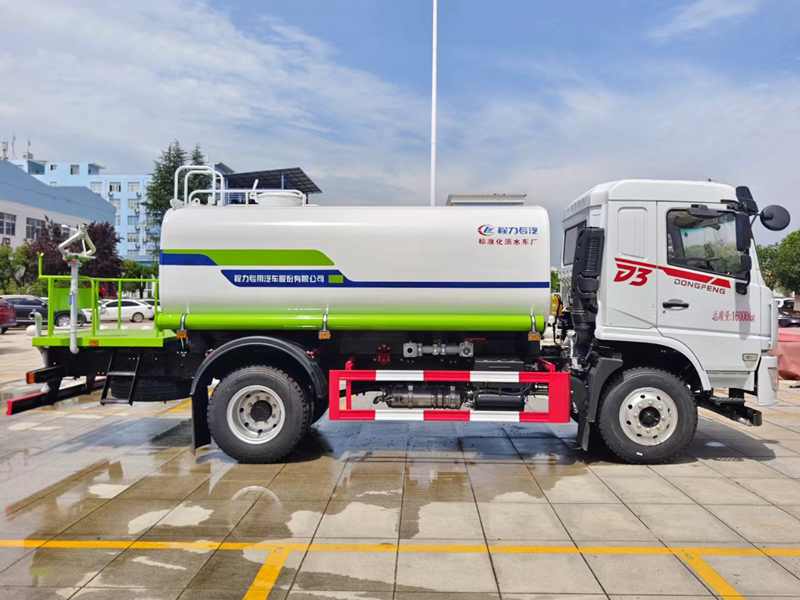 上裝配置:新款3.0版本涂裝,罐體實際容積12方,材質:罐體采用Q235,隔板厚度3mm,罐體碳鋼厚度4mm,封頭厚度5mm,大口徑直通球閥,灑水功能:前沖、后灑、測噴。