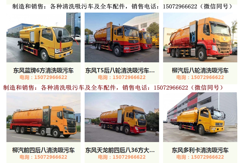 清洗吸污車導(dǎo)購:東風(fēng)多利卡清洗吸污車(10方),東風(fēng)天錦清洗吸污車(15方),江淮清洗吸污車,東風(fēng)天龍雙橋清洗吸污車,東風(fēng)天龍前四后八清洗吸污車。