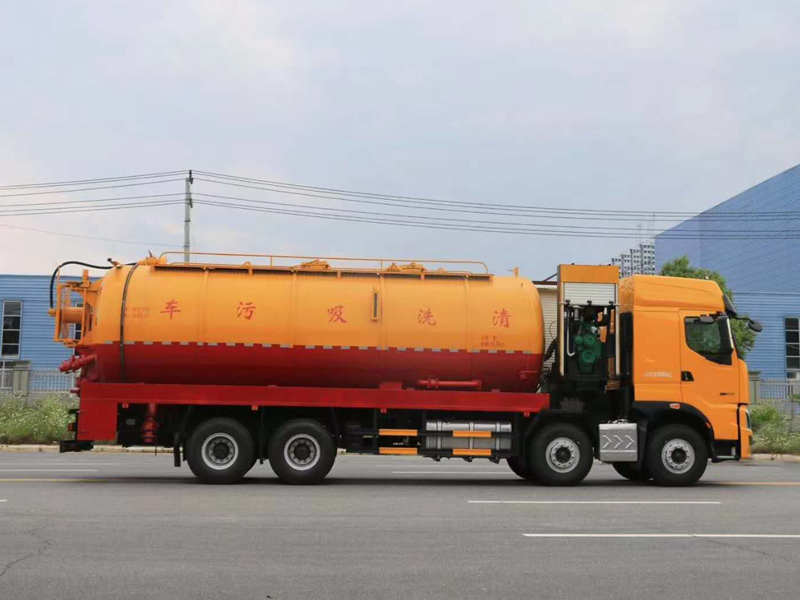 上裝:優質碳鋼8MM罐體,容積約33方(清水7/污水26),兩倉互通,自動液壓絞盤,自帶排污口、排污閥、排氣閥、吸污閥、吸污管,高壓泵,不銹鋼水箱、加大工具箱,前中置140油缸,600液壓門,尾部700液壓開蓋,420馬力付發配SK42水循環泵,嚴格按公告圖片參數改裝,其他標配。