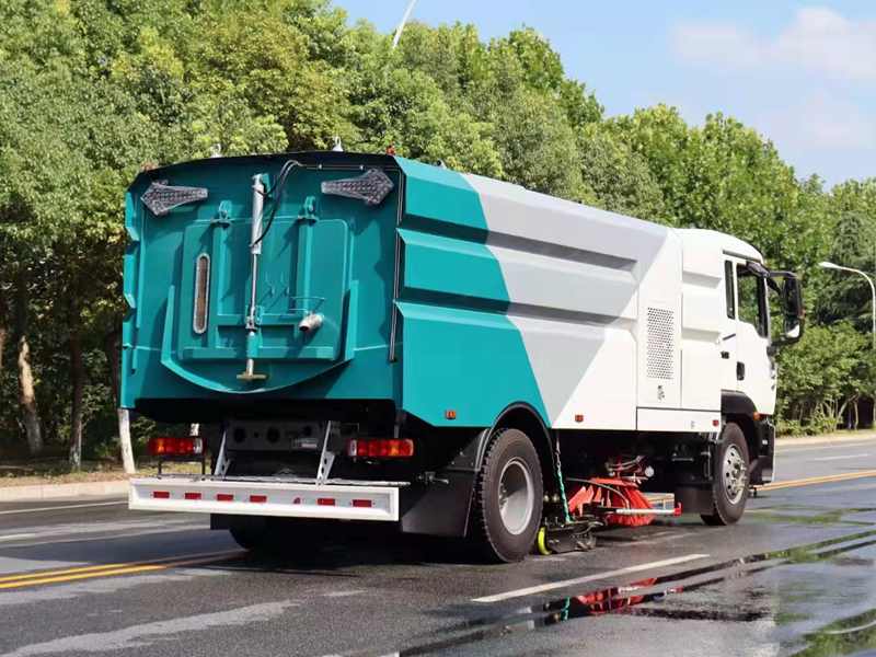 帶高壓前噴霧,對路面污垢進行定點沖洗清理,又可在較干凈的路面配合低壓沖洗作業,進行路面降燥處理,低壓前沖,左右高壓噴桿,高壓后噴霧,20米高壓沖洗卷盤,可吸可掃,相當于一掃路車+一臺路面清洗車同時工作。